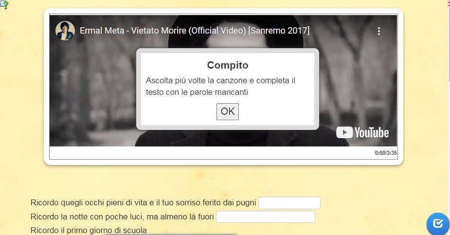 Ascolta la canzone e completa il testo con le parole mancanti